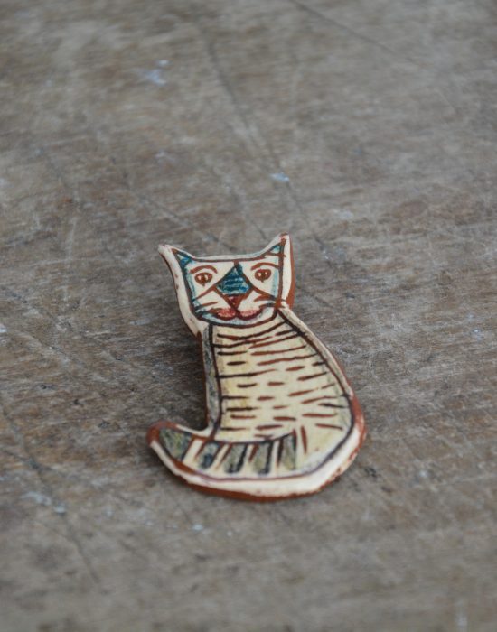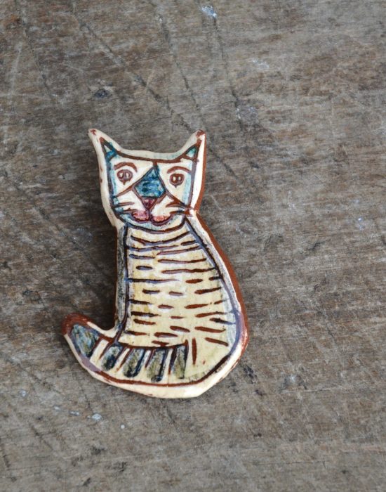 Brosa ceramica din lut ars si glazurat,prevazuta cu ac de brosa